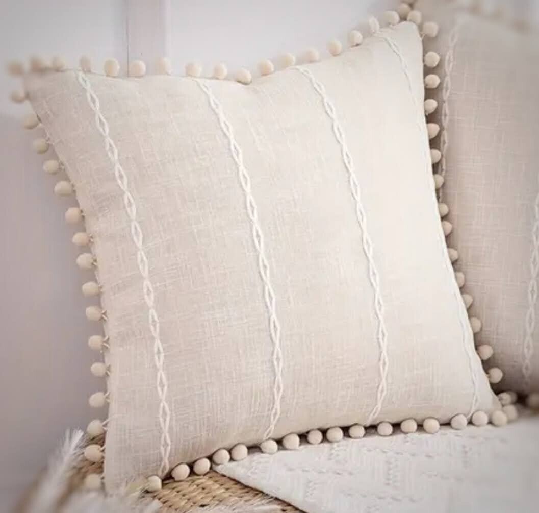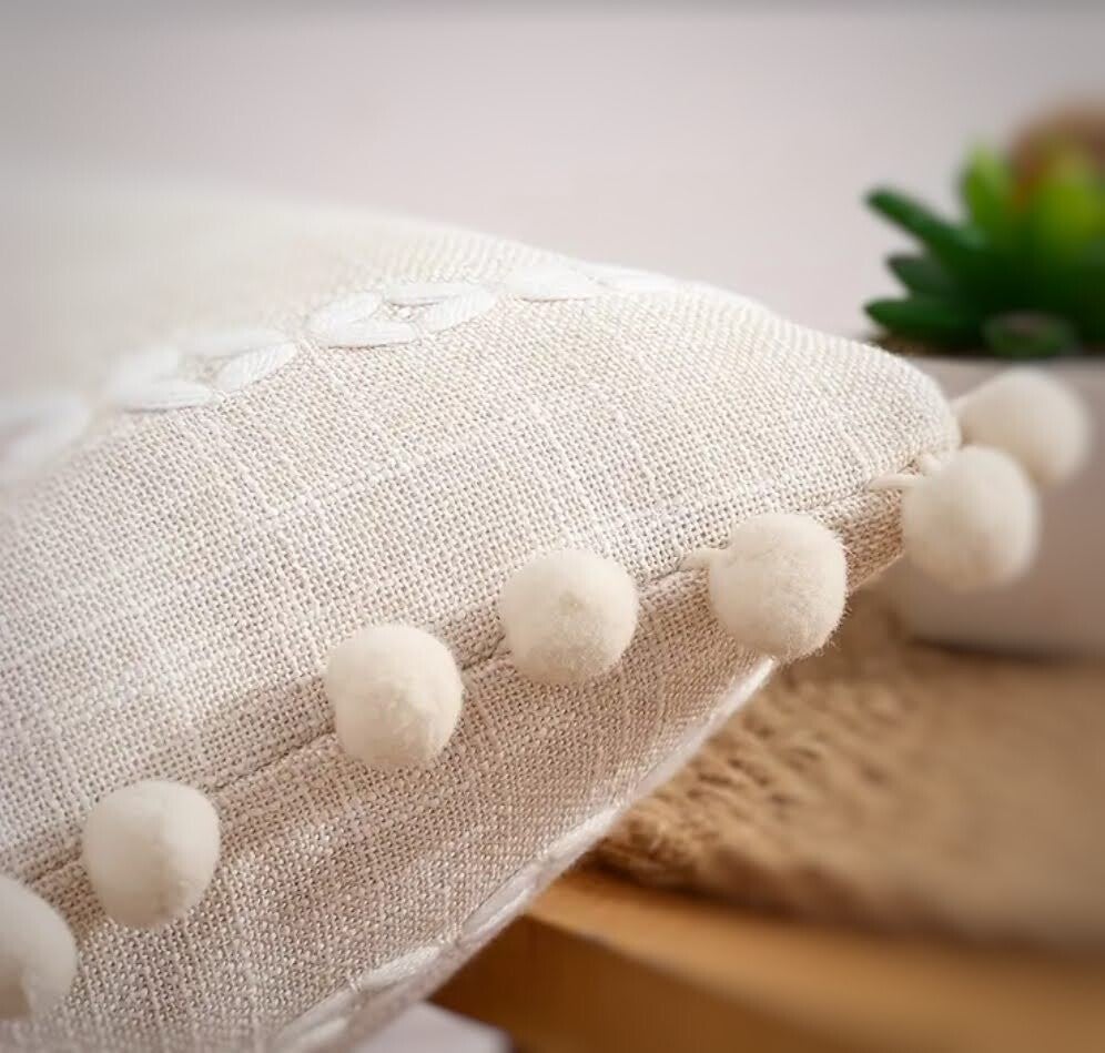 De kleine bolletjes aan de kussenhoes maken dat kussen tot een speels geheel. Leuk voor op de kinderkamer.